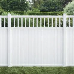 This low-maintenance vinyl fence panel features a unique design that securely locks pickets into place providing strength and complete privacy. Its fastener-free connection between pickets and rails provides a clean and stylish neighbor-friendly appearance that is the same on both sides. The routed post design allows fence rails to securely lock into place without brackets or hardware. To complete your fence project you will also need the 5 x 5 – 8′ Routed Post (#1728652).